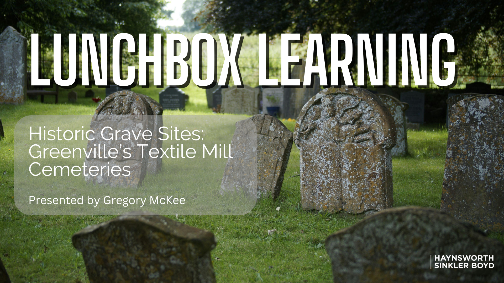 Historic Grave Sites: Greenville's Textile Mill Cemeteries Presented by Gregory McKee Cemeteries preserve lasting memories of both people and places. Gregory McKee will explore the historic textile mill cemeteries of Greenville, South Carolina; sharing the stories behind several of the region’s once-thriving mills. This program sheds light on the often-overlooked cemeteries connected to these mill... Read more » |