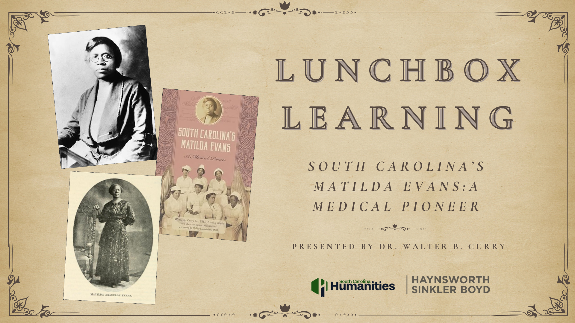 Born four years after the end of slavery, Matilda Arabella Evans, who grew up on a family farm in eastern Aiken County, South Carolina, was the first African American and first woman in licensed to practice medicine in South Carolina and an advocate for improved health care for African Americans, including children. Matilda’s childhood experiences, educational background, religious faith, innovative practices, and her undying love for humanity, propelled her to become a remarkable figure in expanding healthcare access for African American and white families in South Carolina, especially during the era of racial segregation in the South. The presentation explores Matilda remarkable journey from childhood to medical practice.